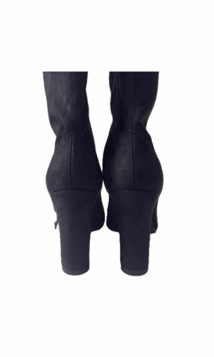 Model: EVA KRAUSE Color: BLACK Upper: LAYCRA Lining: GENUINE LEATHER Insulation: NO Heel height: 9.5 cm Circumference at the top: 26 cm Shaft height: 20 cm CHECK YOUR SIZE: Size 34: Total insole length - 22.5 cm